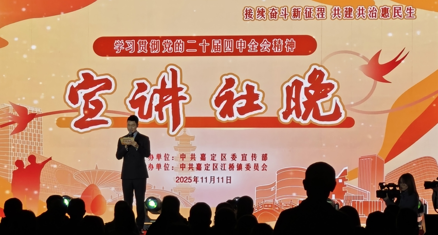 “中国经济是一片大海,狂风掀不翻,暴雨打不散…… ”11月11日,在嘉定区江桥镇一场别开生面的宣讲社晚上,原创歌舞《大海的力量》一开场就点燃全场,舞者用流动的队形模拟浪潮奔涌,铿锵舞步跳出发展底气,正式拉开嘉定区“接续奋斗新征程 共建共治惠民生”宣讲社晚的序幕。这场“理论+文艺+市集”的盛宴,让党的二十届四中全会精神“跳”在舞台上、“融”进生活里。