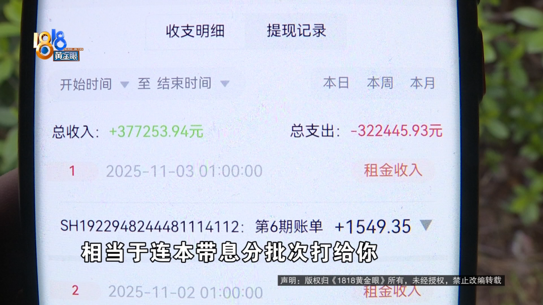董先生:不是每个月只打给你租金的,它是分四期,相当于连本带息,分批次打给你。